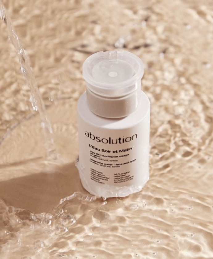 - L’Eau Soir et Matin, ideal for even the most sensitive skin, removes makeup, tones and cleanses. It’s rich in Helichrysum and Lemon Balm hydrosols, and enriched with Potassium, which promotes intercellular exchanges.